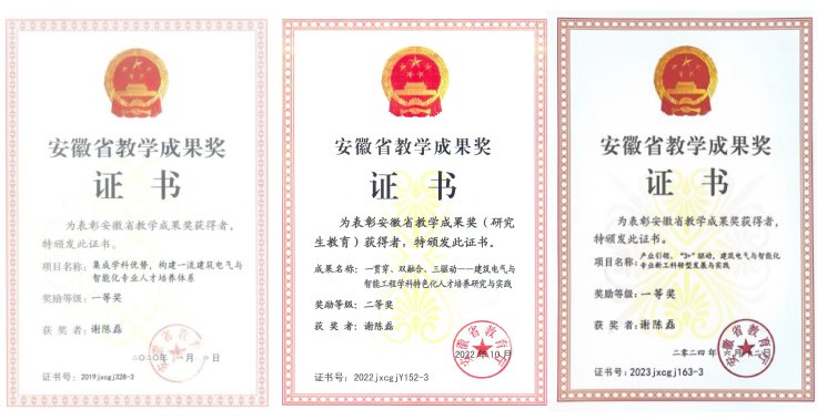 党支部坚持“围绕教育抓党建,抓好党建促教育”的核心理念,将教育教学工作与党建工作同安排同部署同落实。支部通过“教学名师”“优秀共产党员”“优秀教师”等榜样事迹介绍,用身边的事教育身边的人,增强教师立德树人、教书育人的责任感和使命感,积极发挥教师党员的示范引领作用。近年来,支部教师主持国家级、省部级教研项目10余项,获各类教学奖10余项,指导学生参加各类竞赛多项;方潜生主持的“新工科”综合改革类项目获批教育部第一批新工科研究与实践项目;建筑电气与智能化专业获首批国家一流本科专业建设;建筑供配电与照明、智能建筑综合实验获首批国家一流本科课程建设;建筑智能环境学虚拟仿真实验课获批安徽省省级虚拟仿真实验教学一流课程;2023年杨亚龙主持的“产业引领、‘3+’驱动,建筑电气与智能化专业新工科转型发展与实践”获安徽省教学成果一等奖。