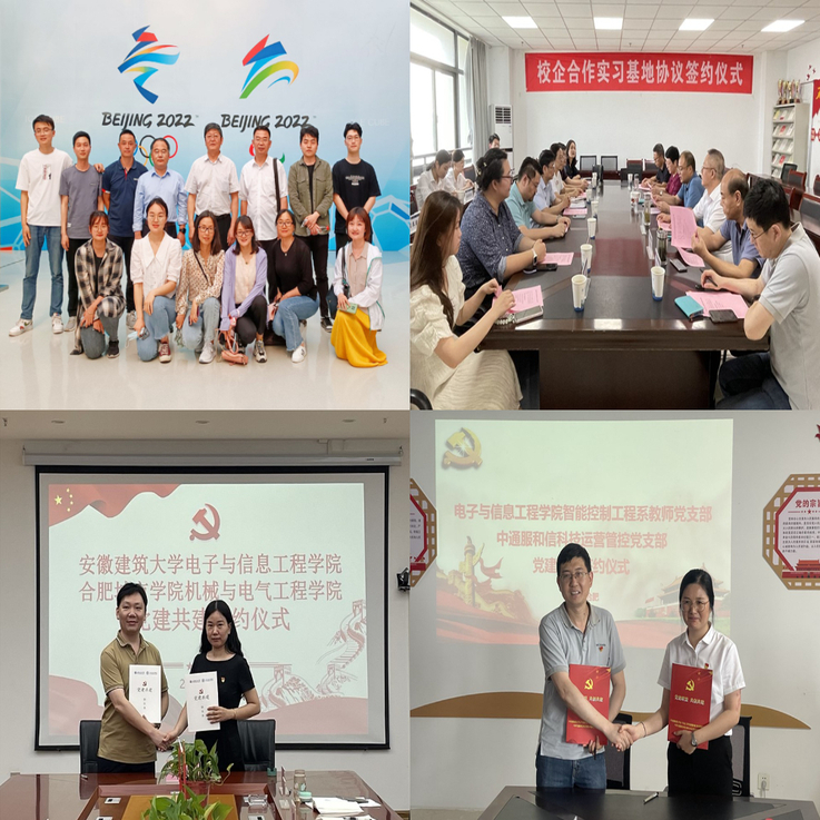 党支部积极发挥学科专业人才科技特色优势,认真落实安徽省“四送一服”工程,加强对外交流合作,通过党建共建、校企合作、主题宣讲等形式服务社会,与学校帮扶村—舒城县汤池镇汤池村党支部党建联建共建,帮助指导汤池村规范党组织建设;与中建电子信息技术有限公司党支部共建的实践教育基地获批省级校企合作实践教育基地;支部多名党员、教师受邀深入企业、学校、机关单位开展专业前沿知识讲座。同济大学、南京工业大学等20余所高校教师先后来校交流学习;支部教师承担的“新型建筑智能化系统平台技术”国家重点研发计划课题研究成果成功应用于2022年冬奥会及冬残奥会场馆;2024年支部教师主编的《建筑企业碳排放监管平台技术要求》,得到行业主管部门充分认可和业内良好评价。