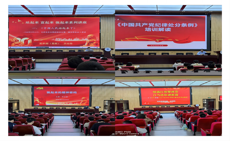 组织部(党校)、宣传部、教师工作部、纪委办、数理学院、马克思主义学院负责人等分别以《中国人民站起来》《改革开放富起来》、《民族复兴强起来》《学习贯彻习近平总书记考察安徽重要讲话精神》《中国共产党纪律处分条例解读》《深入学习贯彻二十届三中全会精神》《党的宗旨和党的作风》《中国共产党党员的条件、义务和权利;党徽党旗、党员徽章规范管理使用》为主题,为党员发展对象作了党课报告。为深入贯彻中央八项规定精神学习教育,培训班组织参训学员观看了反腐电视专题片《反腐为了人民》,参训学员围绕“青年知识分子的理想追求和使命担当”主题认真开展分组研讨。通过专题培训,参训学员进一步端正入党动机,坚定理想信念,提高党性修养,受到一次深刻的政治洗礼和思想淬炼,切实增强了坚定不移听党话、跟党走、感党恩的政治自觉、思想自觉和行动自觉。